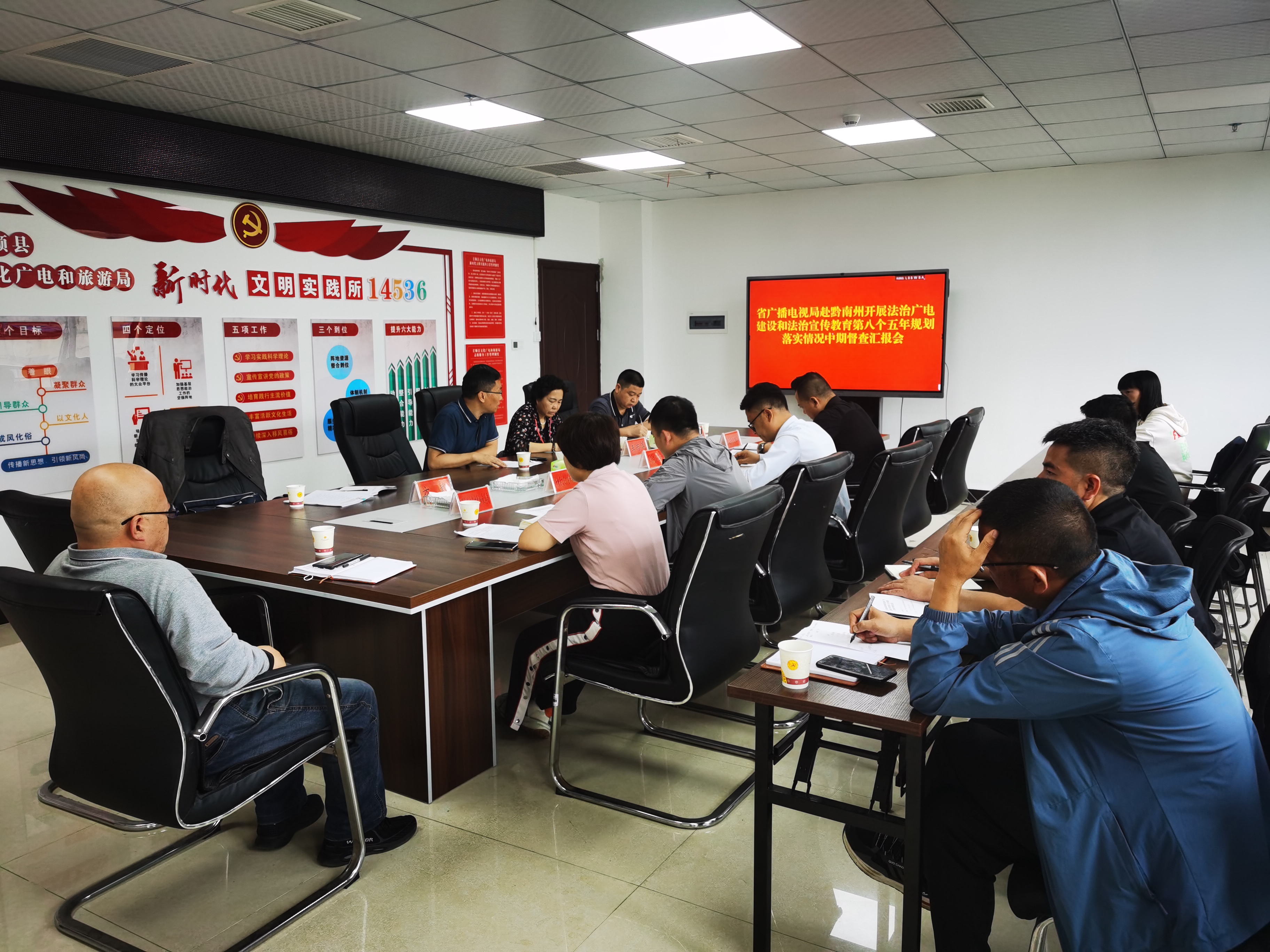 检查组通过组织召开座谈会并查看相关汇报材料、实地检查相关法治政府建设工作资料等方式先后检查了黔南州及都匀市、福泉市、贵定县、瓮安县、龙里县、三都县、独山县、荔波县、长顺县、平塘县、惠水县、罗甸县广电局、安顺市及西秀区、平坝区、镇宁县、关岭县、紫云县、普定县广电局等2个市(州)18个县(市、区)广电局法治广电建设开展情况。
